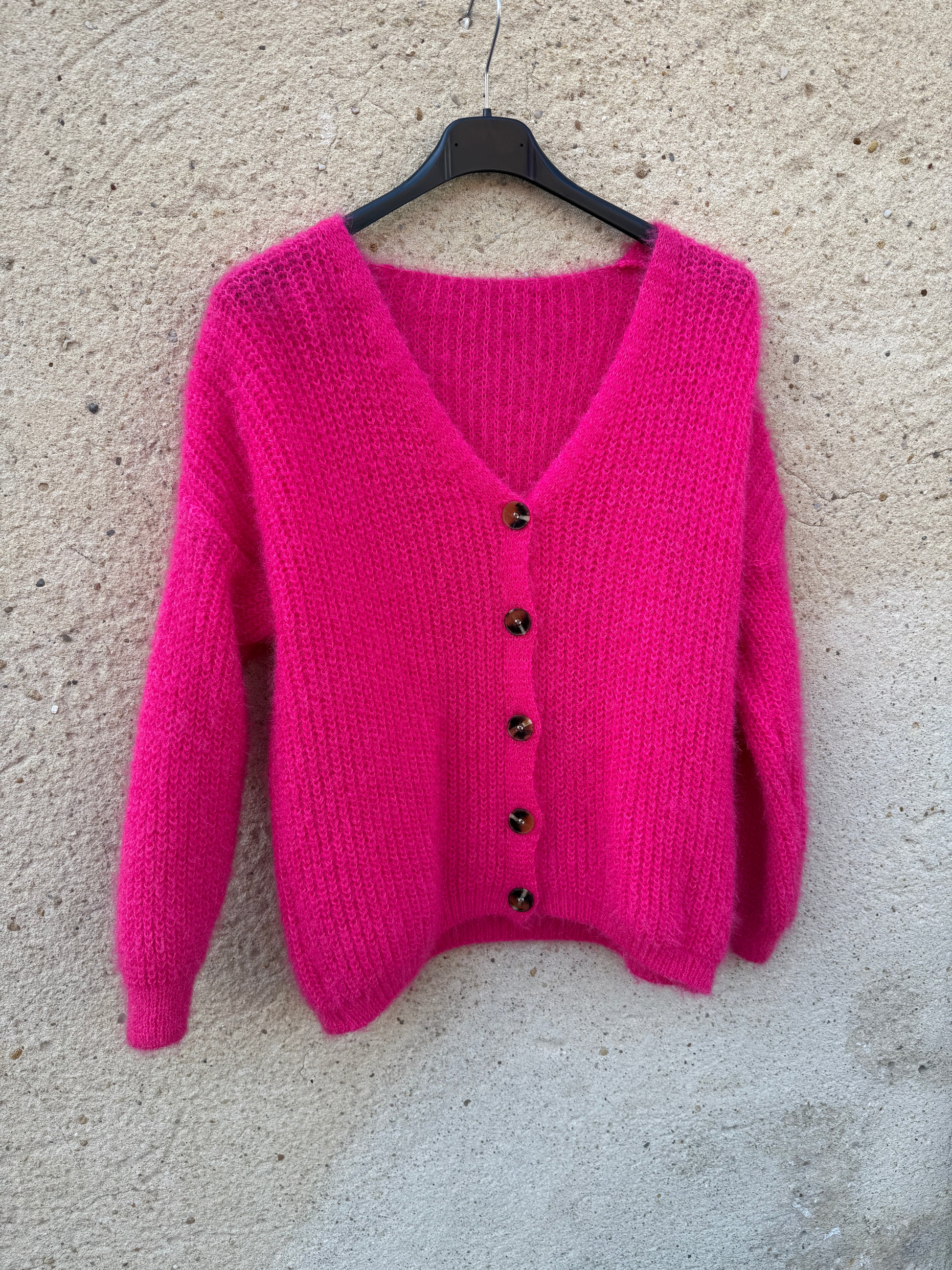 Gilet mohair cardigan rose fushia